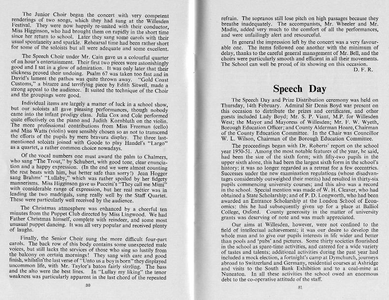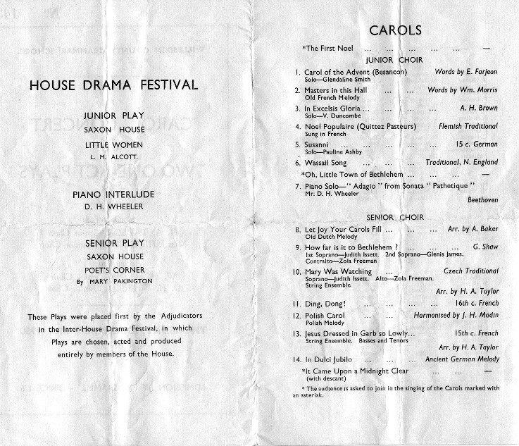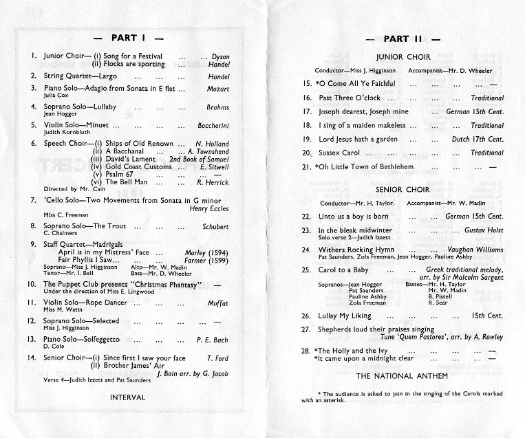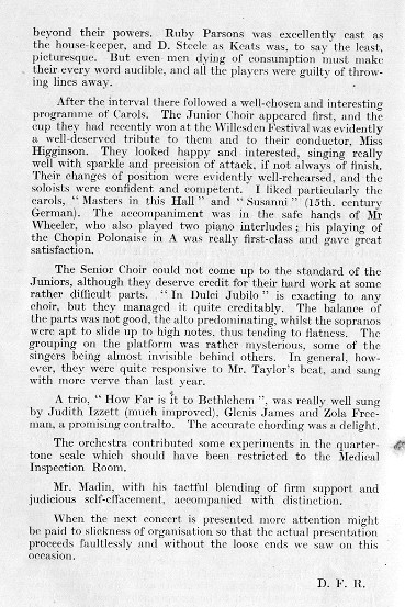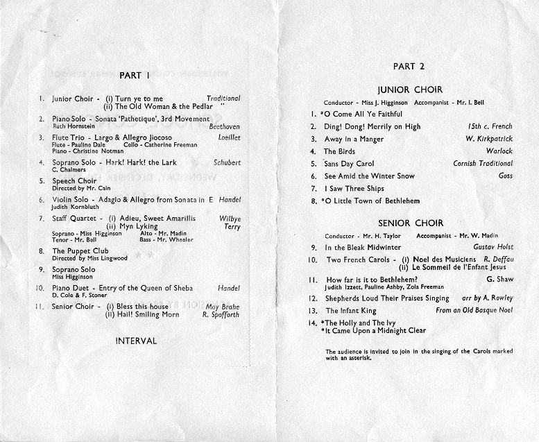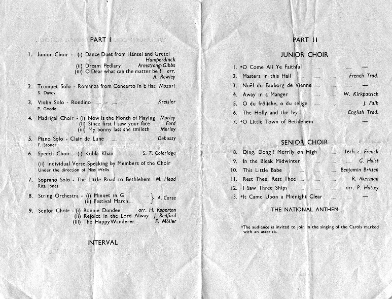 To select a picture and see a full-size image, 'click' on the appropriate 'thumb-nail' below. To return to this page, click the 'back' arrow on your browser. 1949 Programme & School Magazine Write-up
