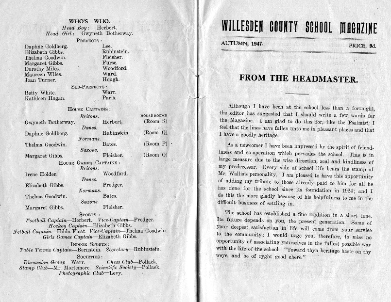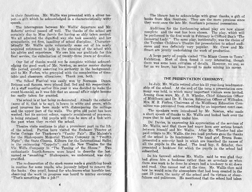 Mr. Wallis, who retired last term after his 23 year-long headmastership of the