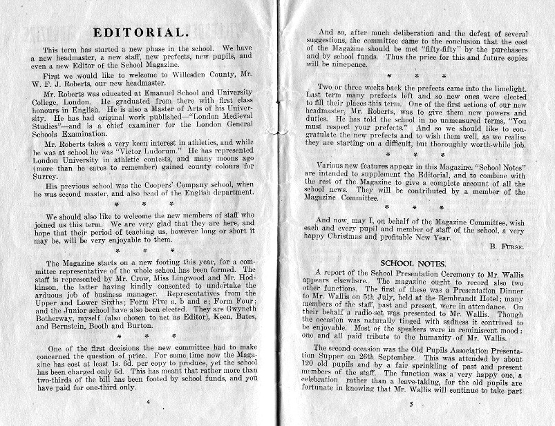 Mr. W. F. J. Roberts, our new headmaster and the Presentation Ceremony for