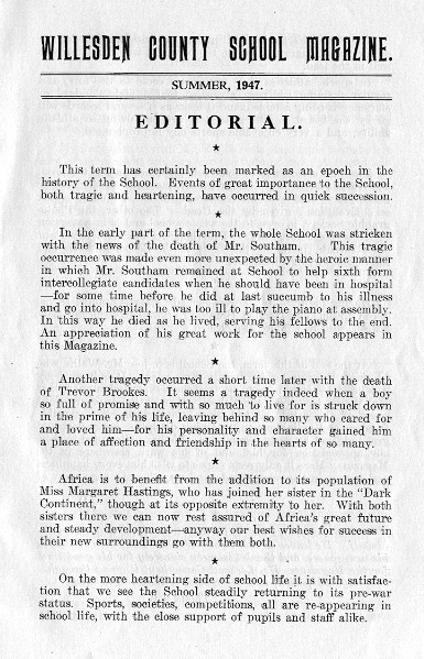 time the School was stricken with the death of Mr. Southam, who like Mr.