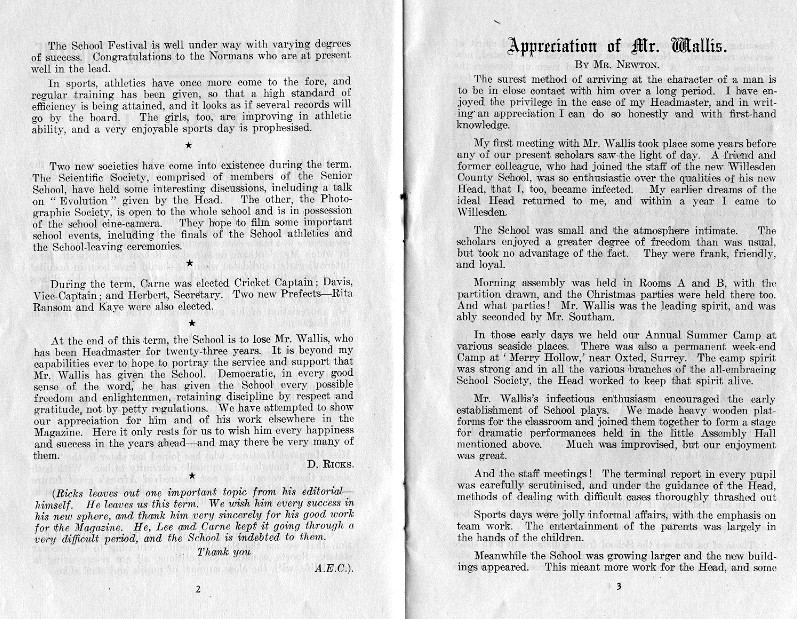 Mr. Wallis, who retired after 23 years as headmaster. At the same