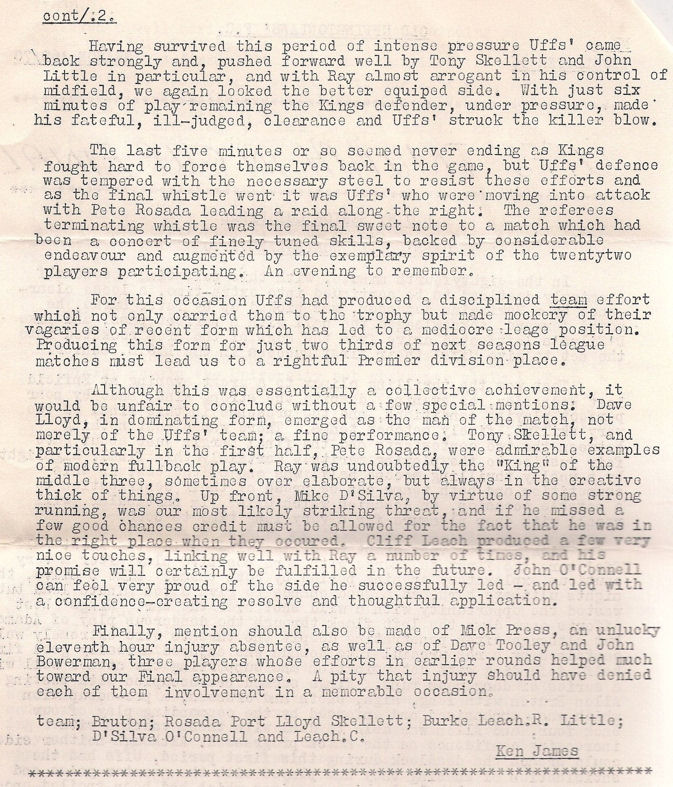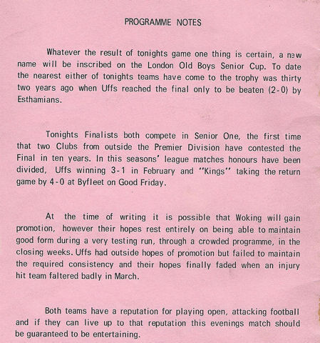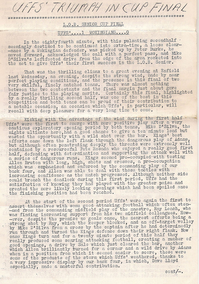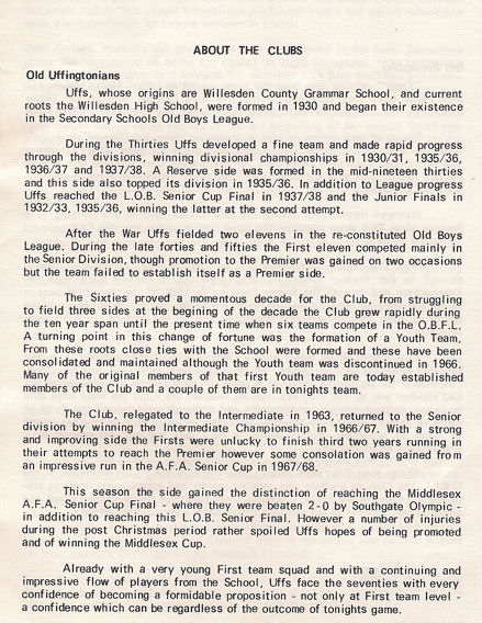 April 1970 under floodlights at Enfield's Football Ground, the Old Uffs'
