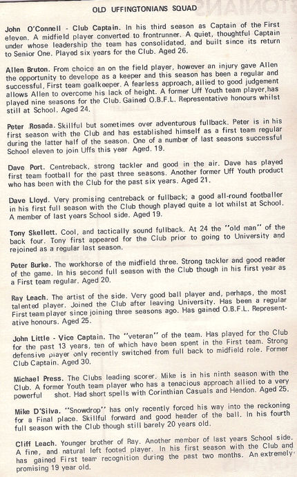 material provided by Ken James, the Old Uffs' Football Secretary describes