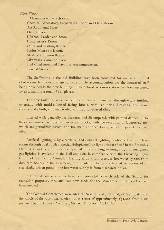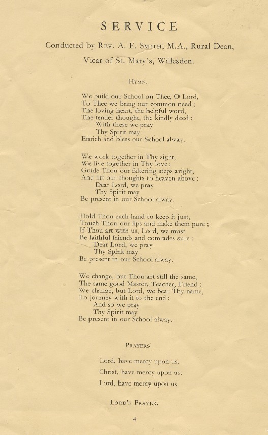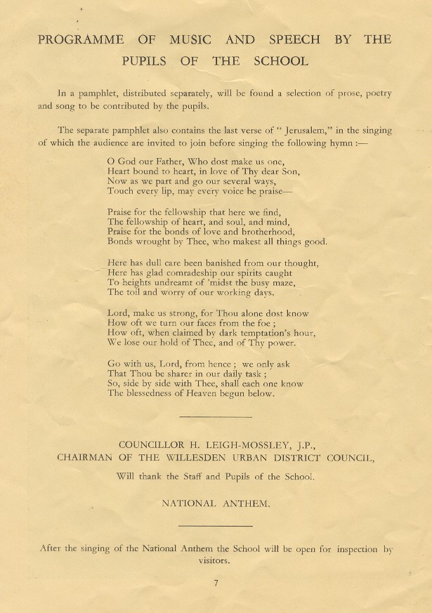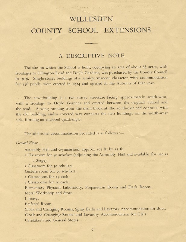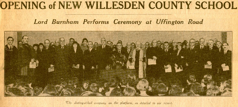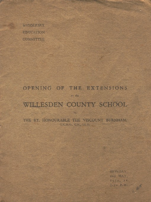 'Opening of the Extensions to the Willesden County School' (the School's Doyle Gardens frontage), was provided